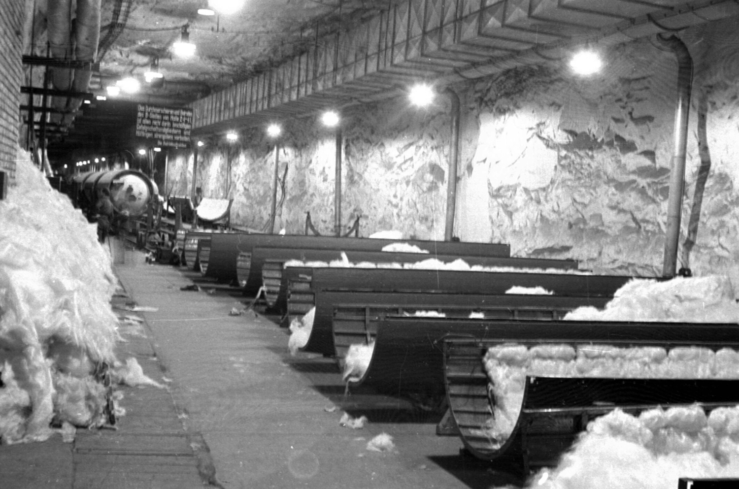 Plus de 60 000 prisonniers du camp de Mittelbau-Dora y ont travaillé. Les galeries étaient privées de lumière et saturées de poussière. Les conditions de travail étaient inhumaines et on estime que près de 20 000 personnes y ont trouvé la mort. L’espace n’était plus pensé pour l’homme, mais pour la machine. L’ouvrier n’était alors devenu qu’un consommable interchangeable.